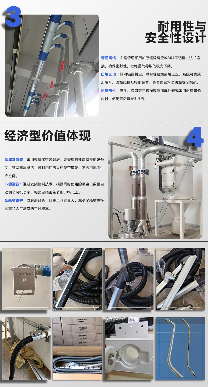 运行与维护成本低:系统多采用节能设计(如变频控制),能根据作业情况自动调节功率,显著降低能源消耗。同时,自动化设计减少了人工依赖,并可回收有价值的物料(如精密铸造型砂、原料药粉等),部分企业通过物料回用年创收可达数百万元。